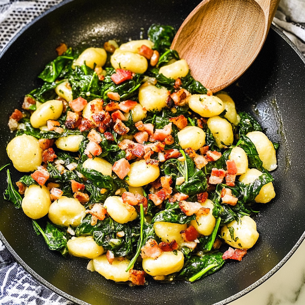 Imagine a dish that brings together a delightful combination of crispy pancetta and silky spinach gnocchi, all simmered in a creamy sauce. The aroma wafts through the kitchen, teasing your
