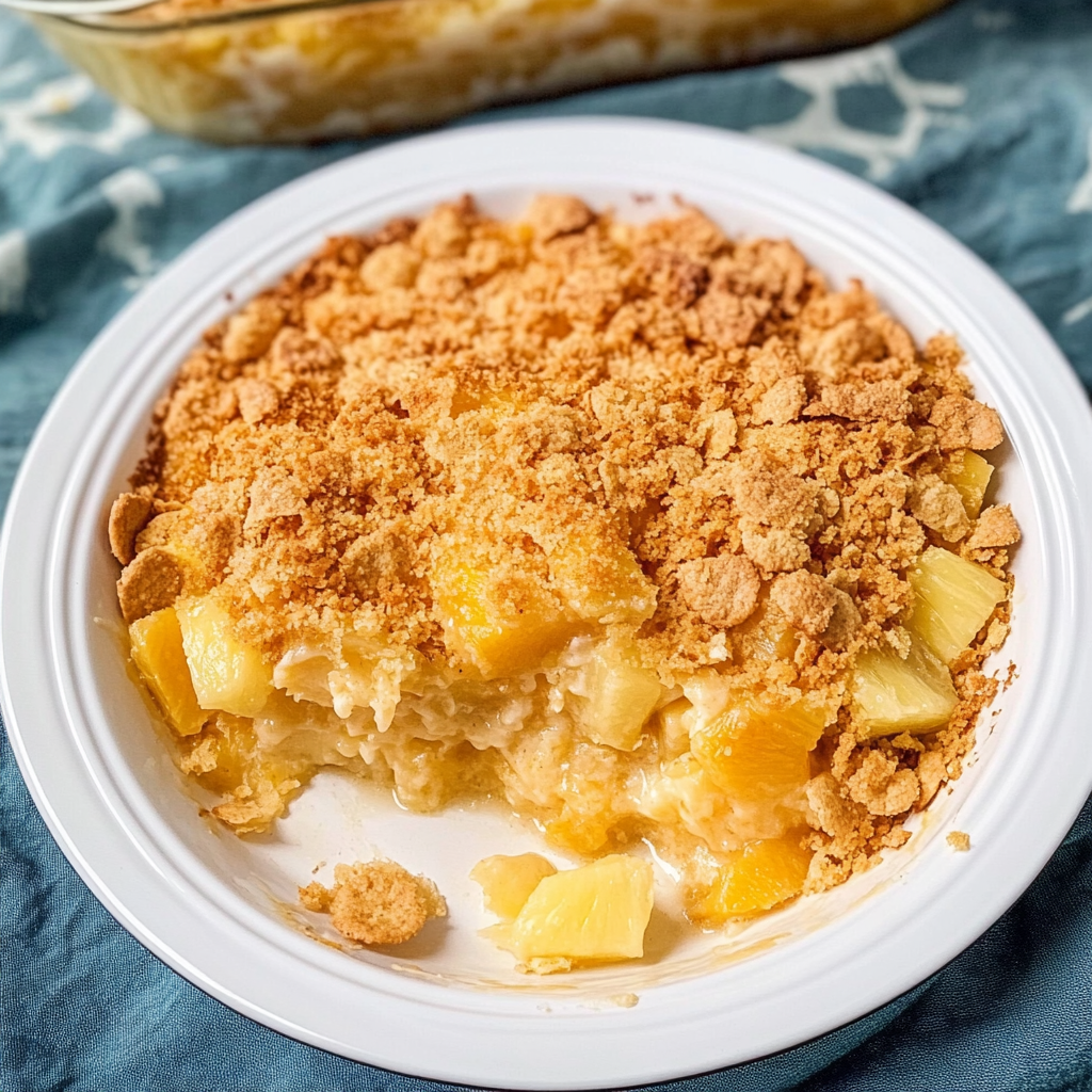 Indulge in the delightful combination of sweet and savory with pineapple casserole with Ritz crackers. This dish dances on your palate, bringing together juicy pineapple chunks, creamy goodness, and a