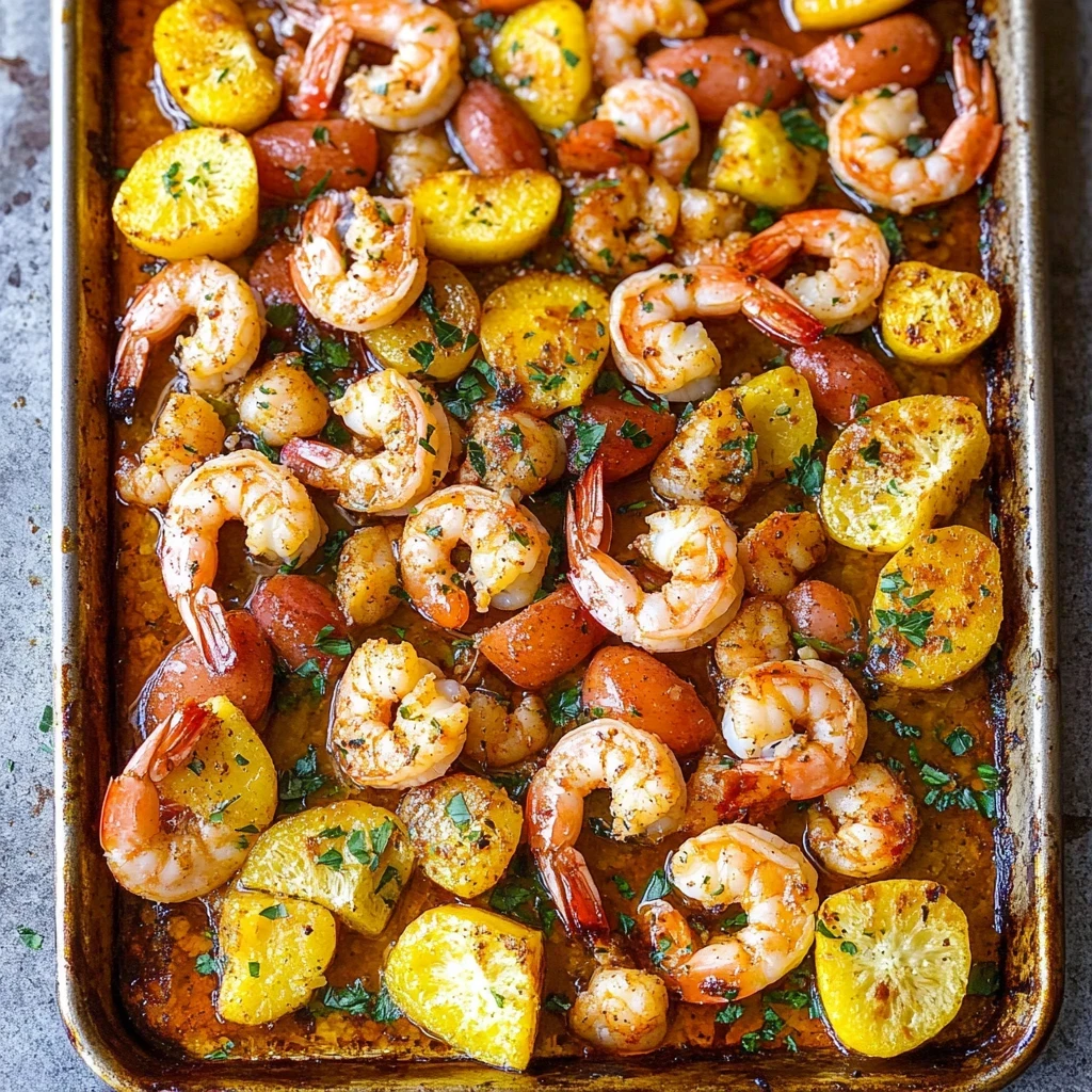 Imagine the irresistible aroma of smoky sausage mingling with succulent shrimp, as colorful corn and tender baby potatoes roast to perfection in your oven. This sheet pan shrimp boil is