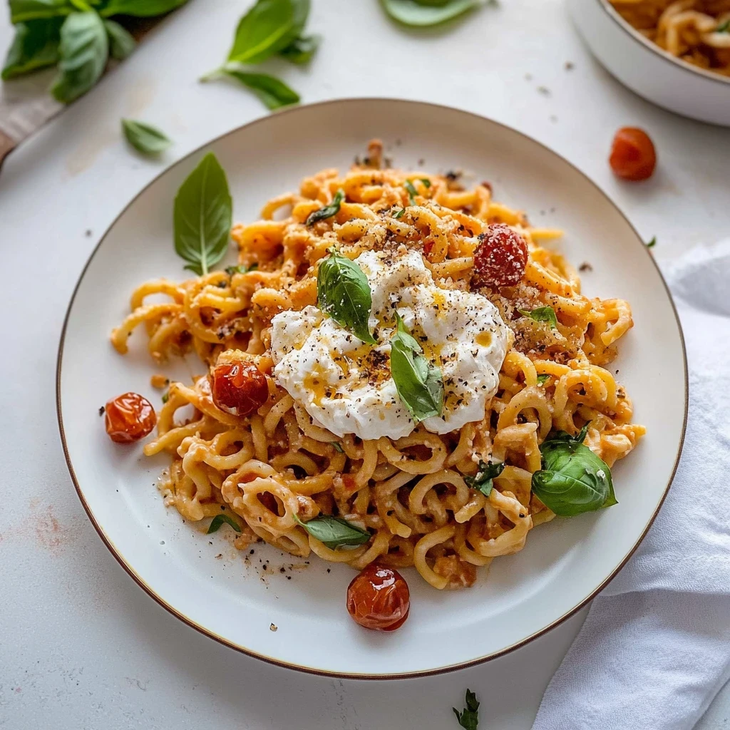 Imagine twirling al dente spaghetti around your fork, each bite bursting with the sweetness of cherry tomatoes and the creaminess of burrata cheese. This burrata pasta is not just a
