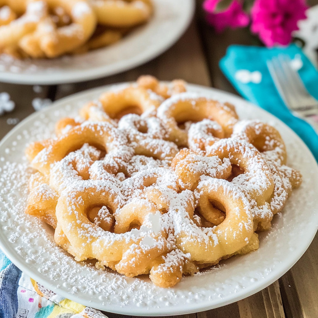 Funnel cakes are the kind of food that makes you feel like a kid again, with their golden-brown swirls and powdered sugar dusting. Imagine standing at a fairground, the sweet