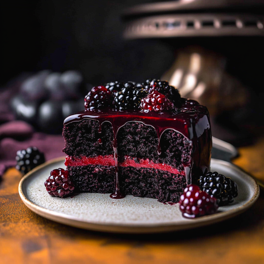 When you take a bite of Blackberry Velvet Cake, you’re met with an explosion of rich chocolate flavors intertwined with the tartness of fresh blackberries. The velvety texture melts in