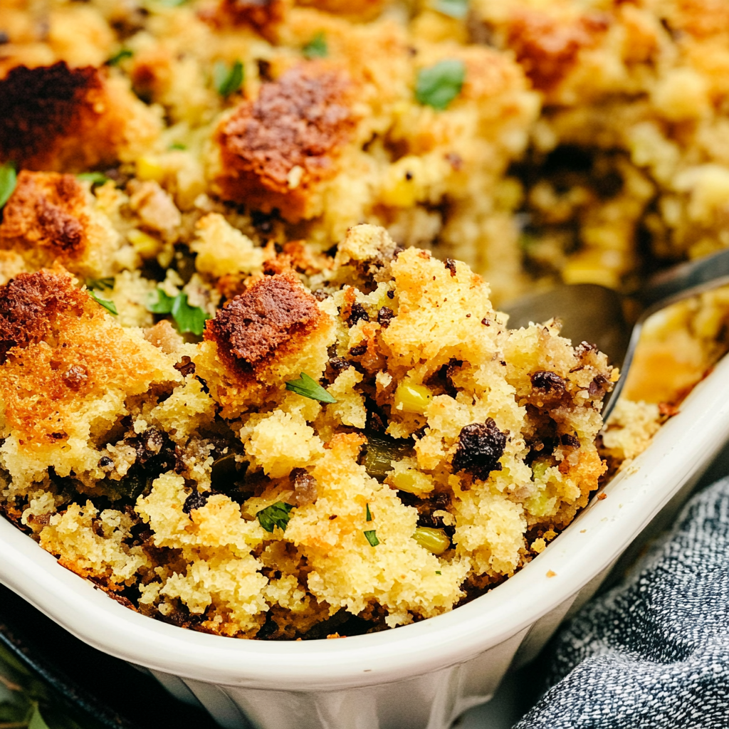 There’s something magical about the aroma of cornbread stuffing wafting through the air, wrapping you in a warm embrace of buttery goodness. Picture this: golden cornbread crumbled into fluffy clouds,