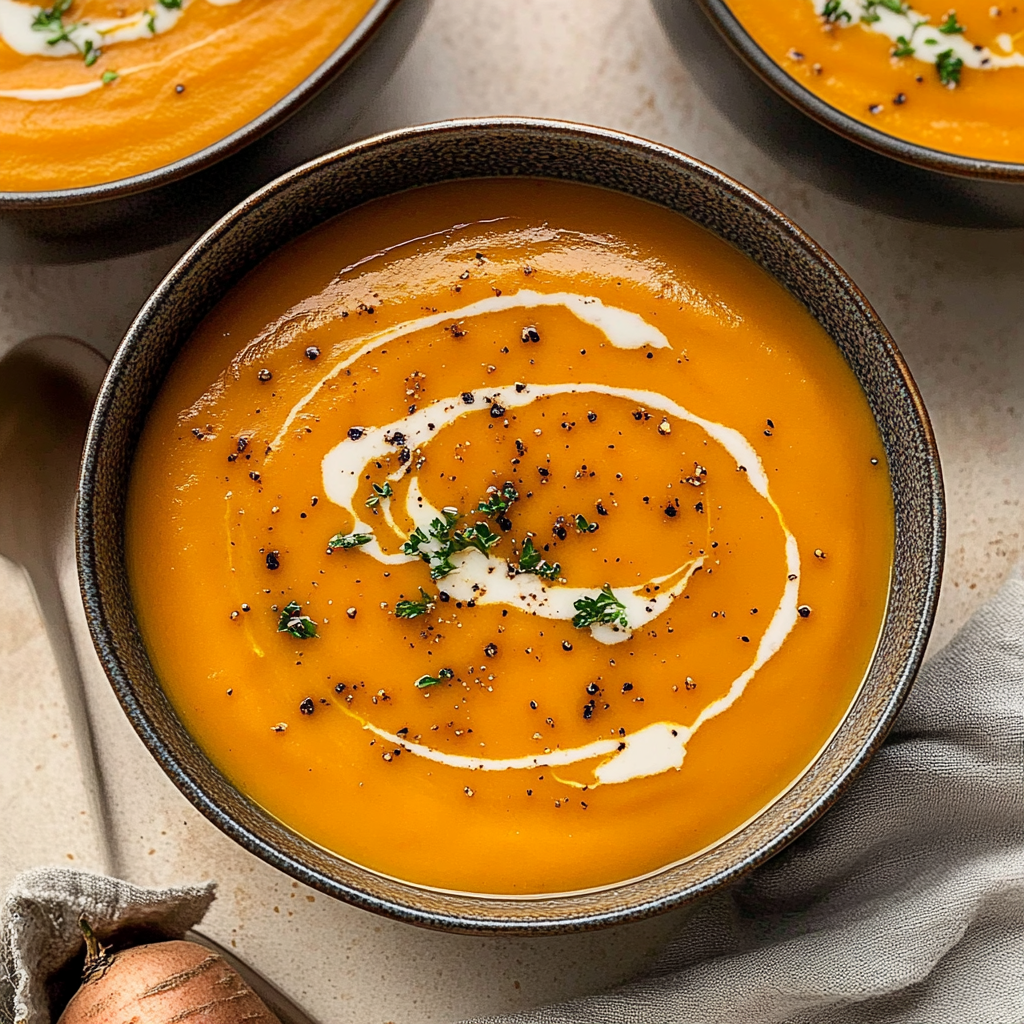 Imagine the cozy embrace of a warm bowl of Maple Roasted Sweet Potato Carrot Soup, its velvety texture wrapping around you like a favorite blanket. The sweet aroma of roasted
