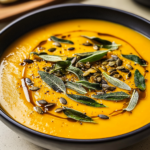 Keywords: For added depth of flavor, consider sautéing the onions with butter. You can substitute butternut squash for pumpkin or add a pinch of nutmeg for warmth. Garnish with crispy sage leaves for crunch.