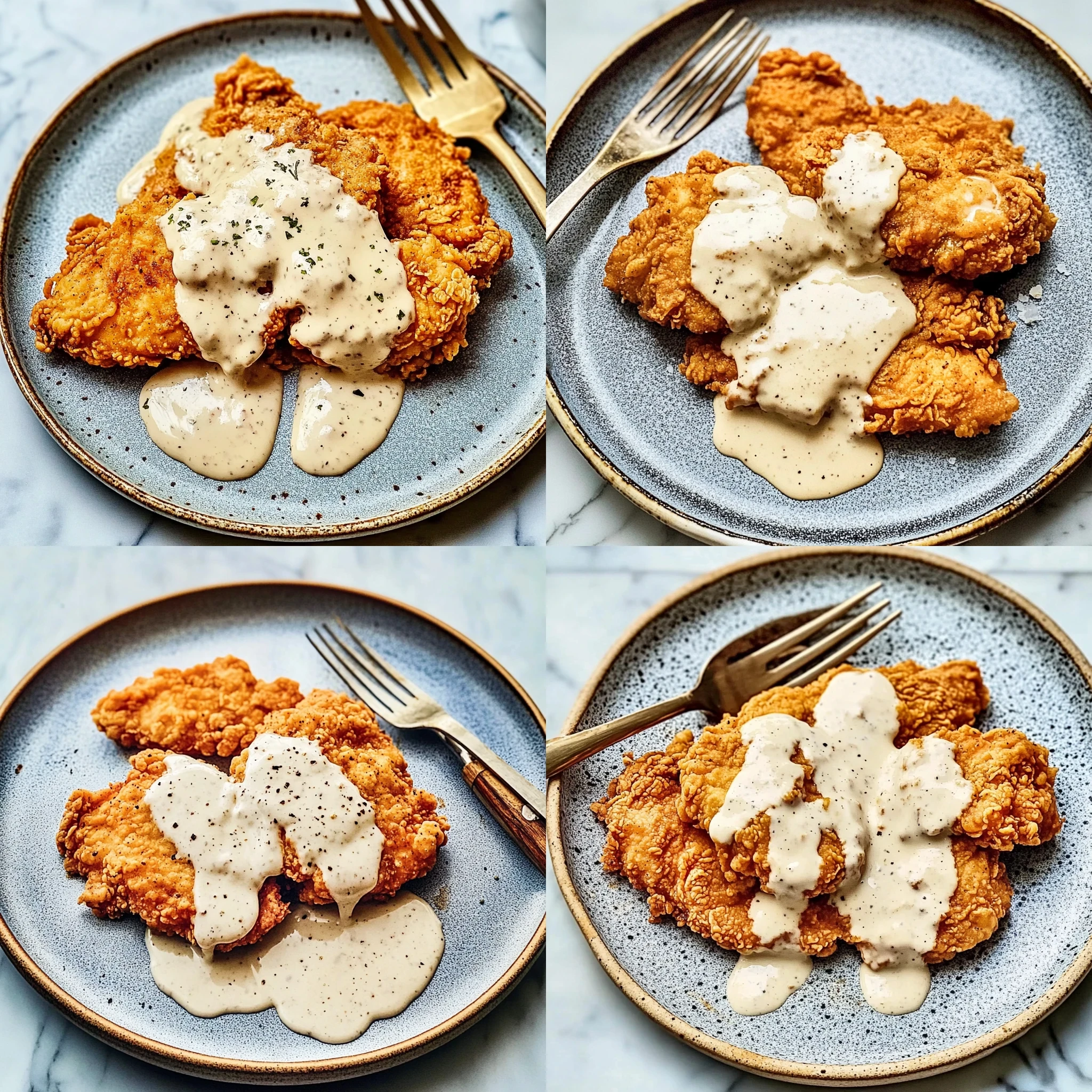 While the chicken fries, make your mashed potatoes. Boil cubed russet potatoes in salted water until tender—this usually takes about 15-20 minutes. Drain them well before returning to the pot where you’ll add warm milk, unsalted butter, salt, and black pepper. Mash everything together until smooth and creamy.