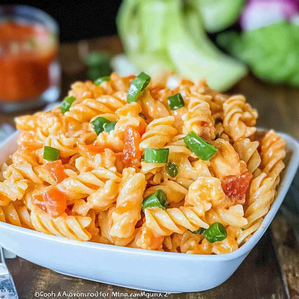 Enjoy every mouthful of this delightful dish that brings together the best of buffalo chicken wings and refreshing pasta salad!