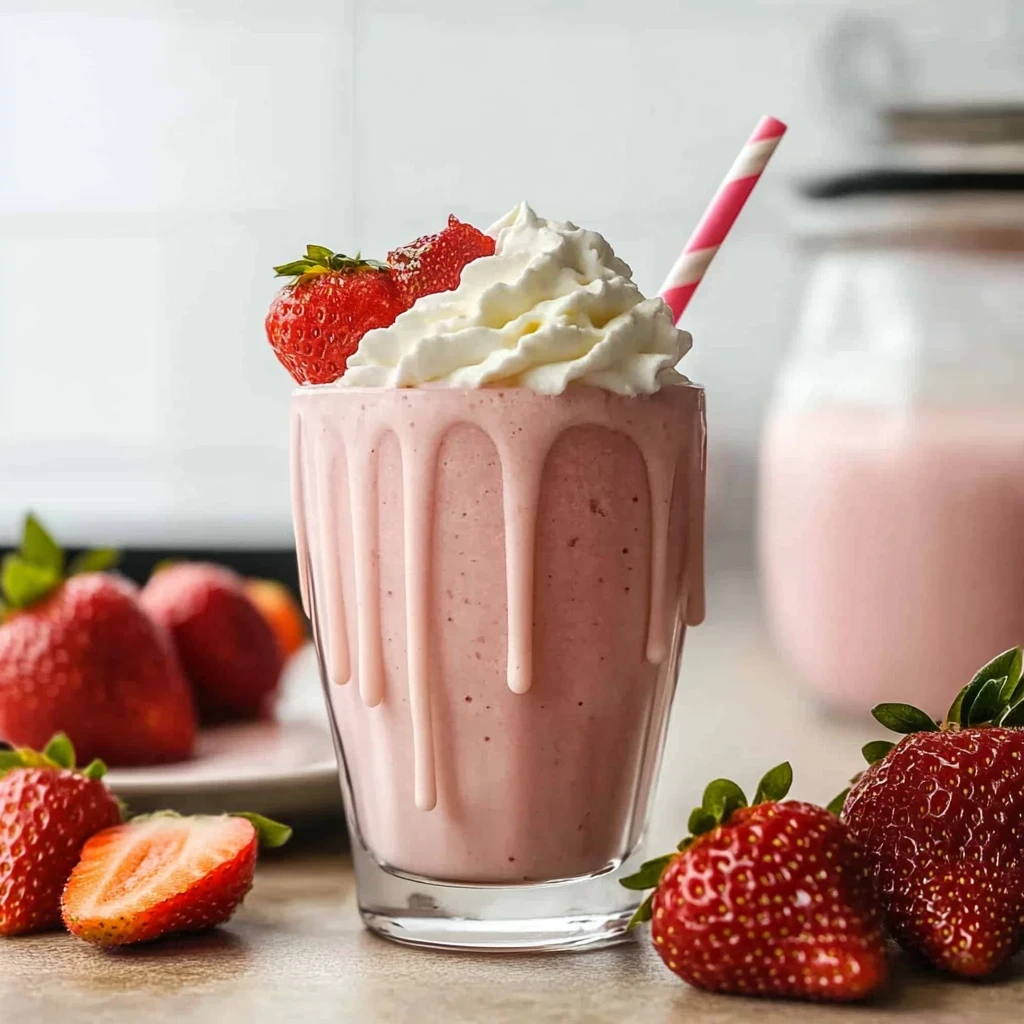 Serve: The moment you’ve been waiting for has arrived! Carefully pour the thick milkshake into serving glasses, watching it cascade down the sides in a delightful swirl of pink and white. For an elegant touch, feel free to garnish with additional fresh strawberries on top—this not only enhances the presentation but also gives guests a visual cue of what deliciousness awaits inside. Serve immediately for the best experience; nothing beats sipping on a refreshingly cool strawberry milkshake!