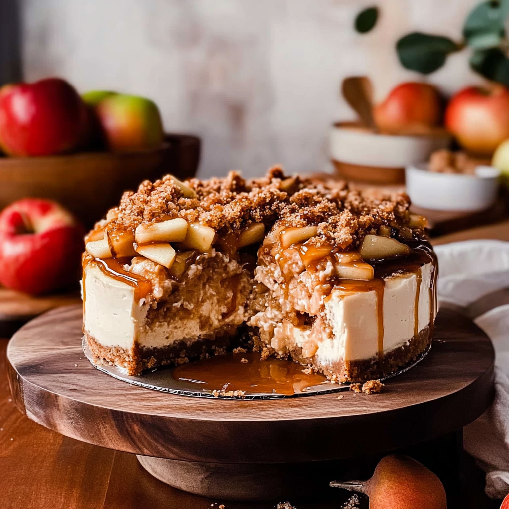 - This delightful Salted Caramel Apple Pie Cheesecake combines creamy cheesecake with spiced apples and a luxurious salted caramel drizzle