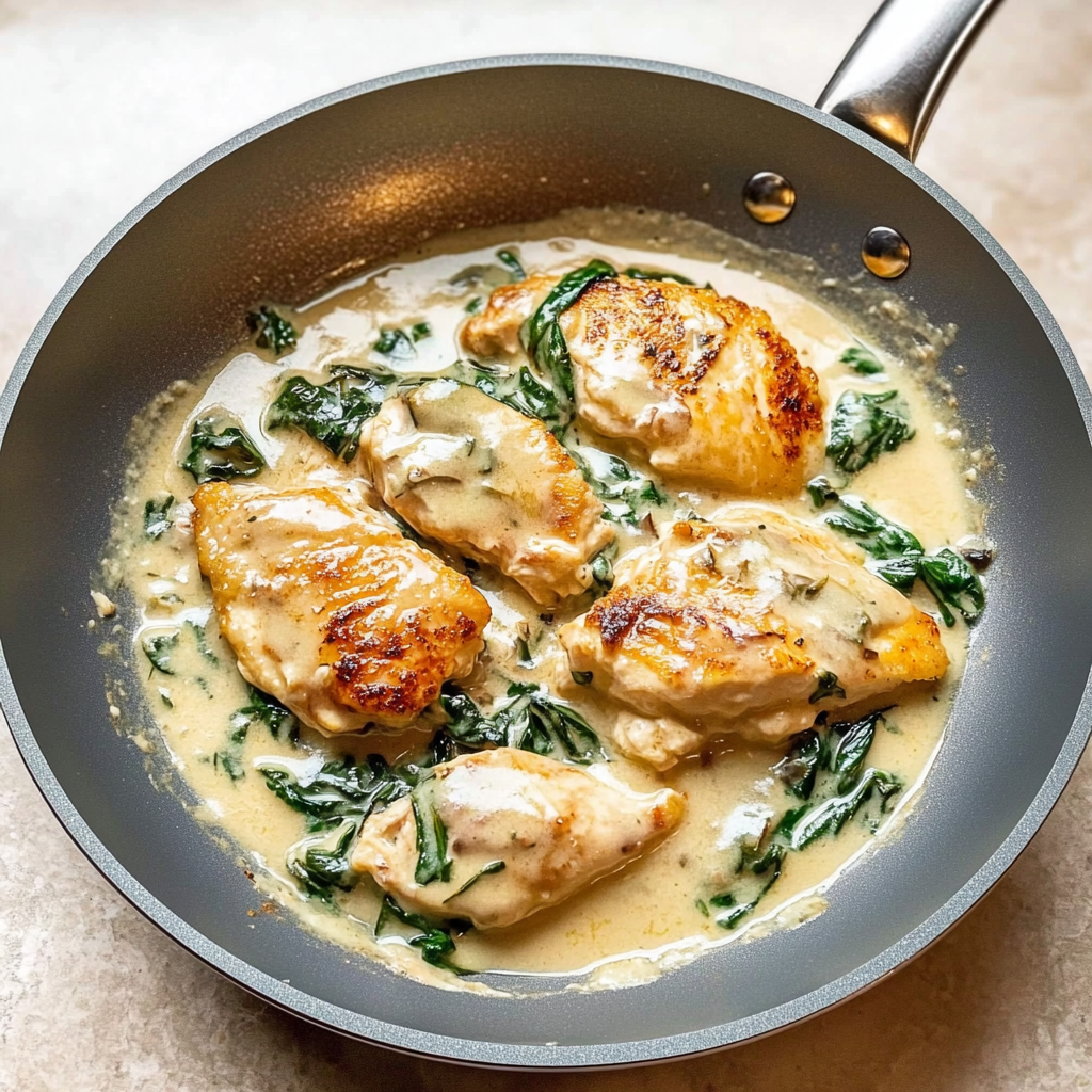 Sear the chicken until golden brown first, then cook the spinach and sauce while the chicken rests. This ensures juicy meat and flavorful sauce.