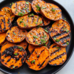 - Grill sweet potato slices for about 5-7 minutes per side or until tender and charred.