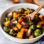 • This Maple Roasted Brussels Sprouts and Butternut Squash recipe is a delightful mix of sweet and savory