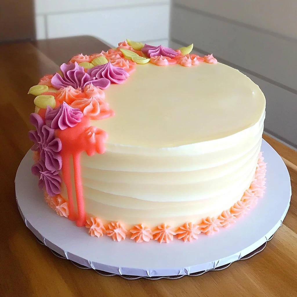 Prepare the Cake: Begin by preheating your oven to a cozy 350°F (175°C). This temperature is perfect for baking our pretty cake, ensuring it rises beautifully. While the oven warms up, take your cake pans and grease them generously, then line the bottoms with parchment paper to prevent sticking. In a large mixing bowl, combine 2 cups of all-purpose flour, 1 cup of granulated sugar, 1 tablespoon of baking powder, and ½ teaspoon of salt. You’ll notice the sweet aroma of sugar mingling with the earthy scent of flour—such a delightful combination! Next, add in ½ cup of softened unsalted butter, 1 cup of room temperature milk, 2 large eggs (also at room temperature), and 1 teaspoon of vanilla extract. Mix everything together on medium speed until you achieve a smooth batter that feels velvety to the touch. Once mixed, divide this luscious batter evenly between your prepared pans. Bake for 25 minutes or until a toothpick inserted into the center comes out clean. The cakes should have a lovely golden hue and smell divine as they cool down.